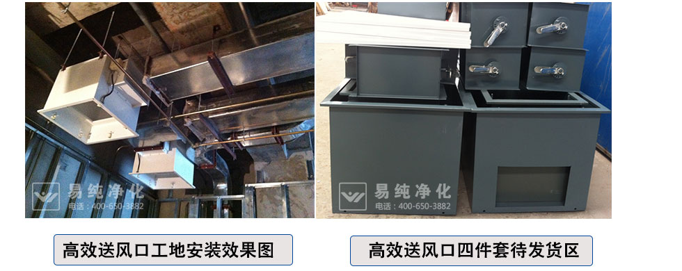 高效送風口為千級、萬級、十萬級凈化空調系統較為理想的終端過濾裝置,可廣泛于醫藥、衛生、電子、化工等行業的凈化空調系統。高效送風口是用作改造和新建1000-300000級各級潔凈室的終端過濾裝置,是滿足凈化要求的關鍵設備。高效送風口包含靜壓箱,散流板,高效過濾器,與風管的接口可為頂接或側接
